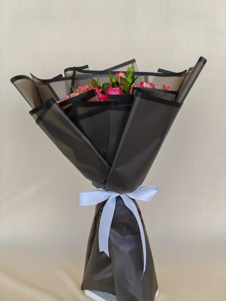 اقرأ المزيدبوكيه بيبي روز دبل كلر بتصميم فاخر يجمع بين الجمال والتناسق، يحتوي على زهور البيبي روز الفريش بلونيها الوردي والأبيض داخل تغليف أسود أنيق مزين بشريطة بيضاء ناعمة.