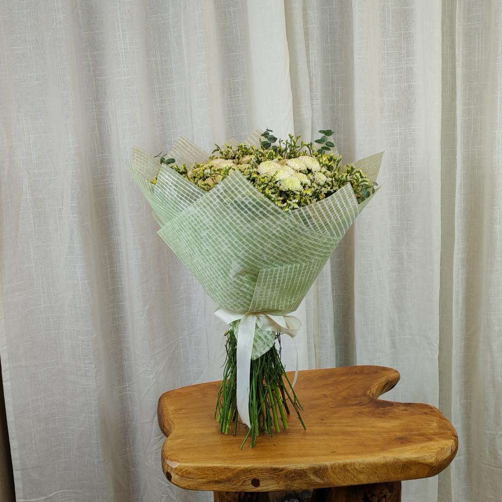 اقرأ المزيدبوكيه اللمنيم الأبيض بتصميم طبيعي أنيق يجمع بين النعومة والبساطة، يحتوي على زهور اللمنيم الفريش باللون الأبيض مع لمسات خضراء مميزة داخل تغليف ناعم بلون طبيعي متناغم.